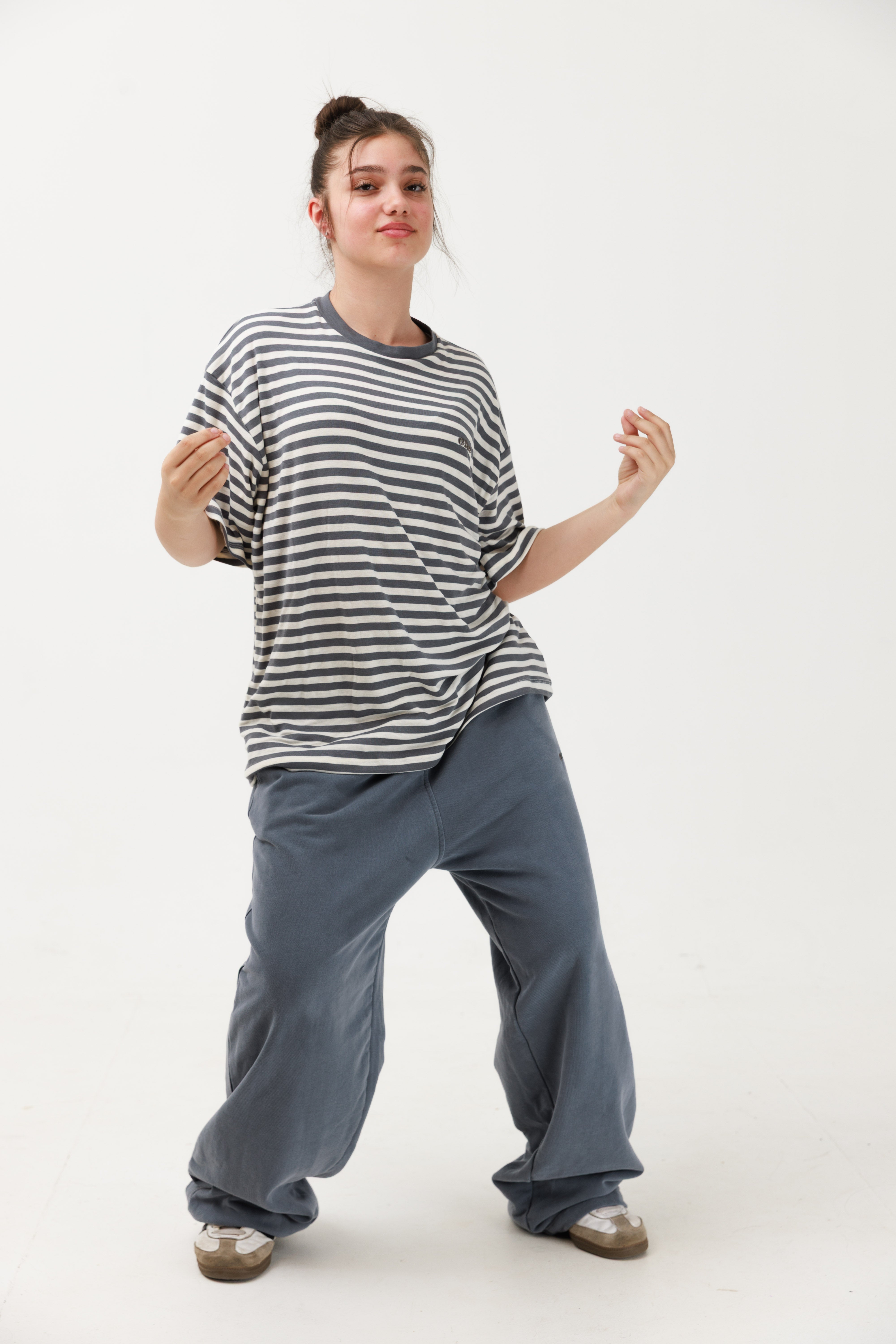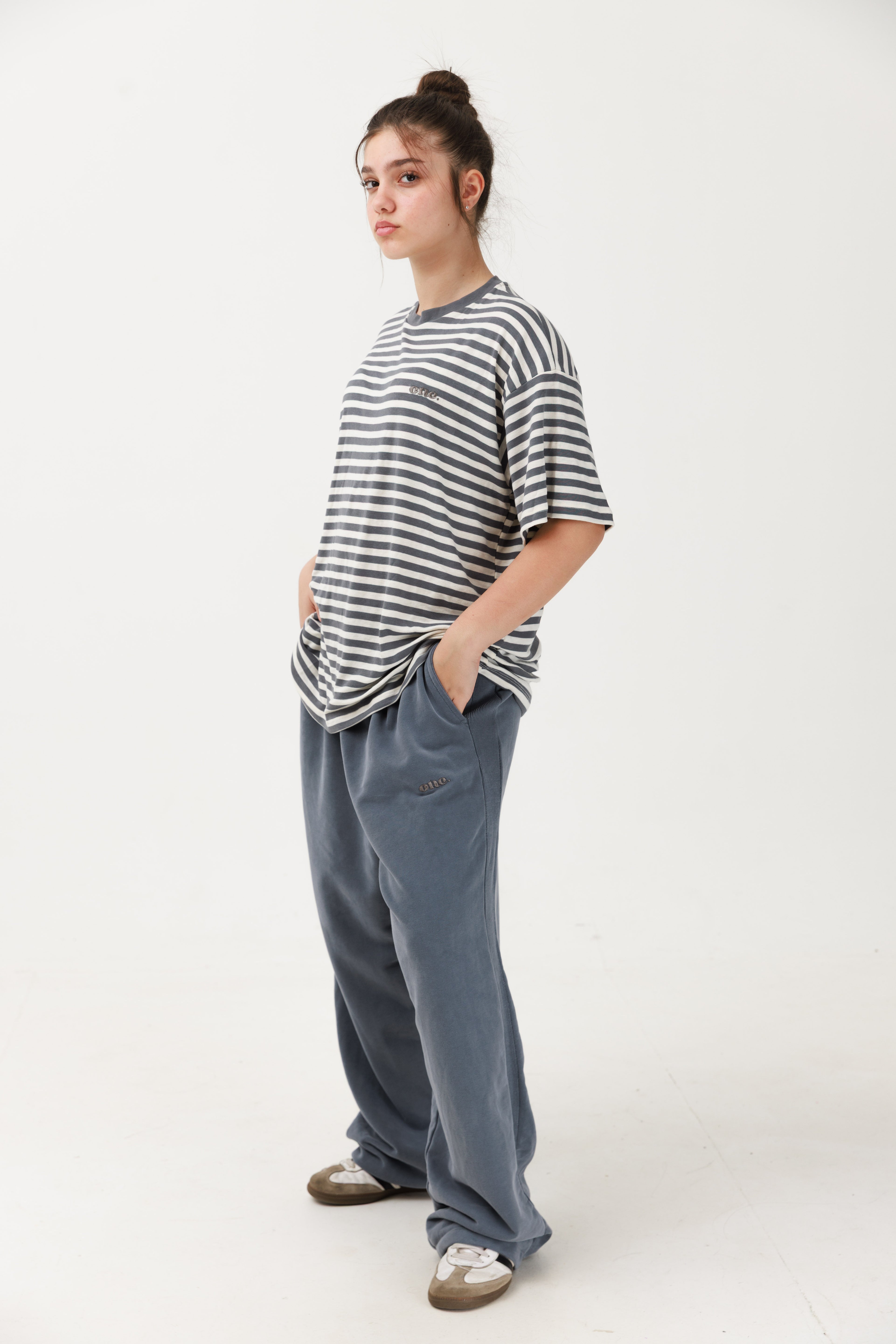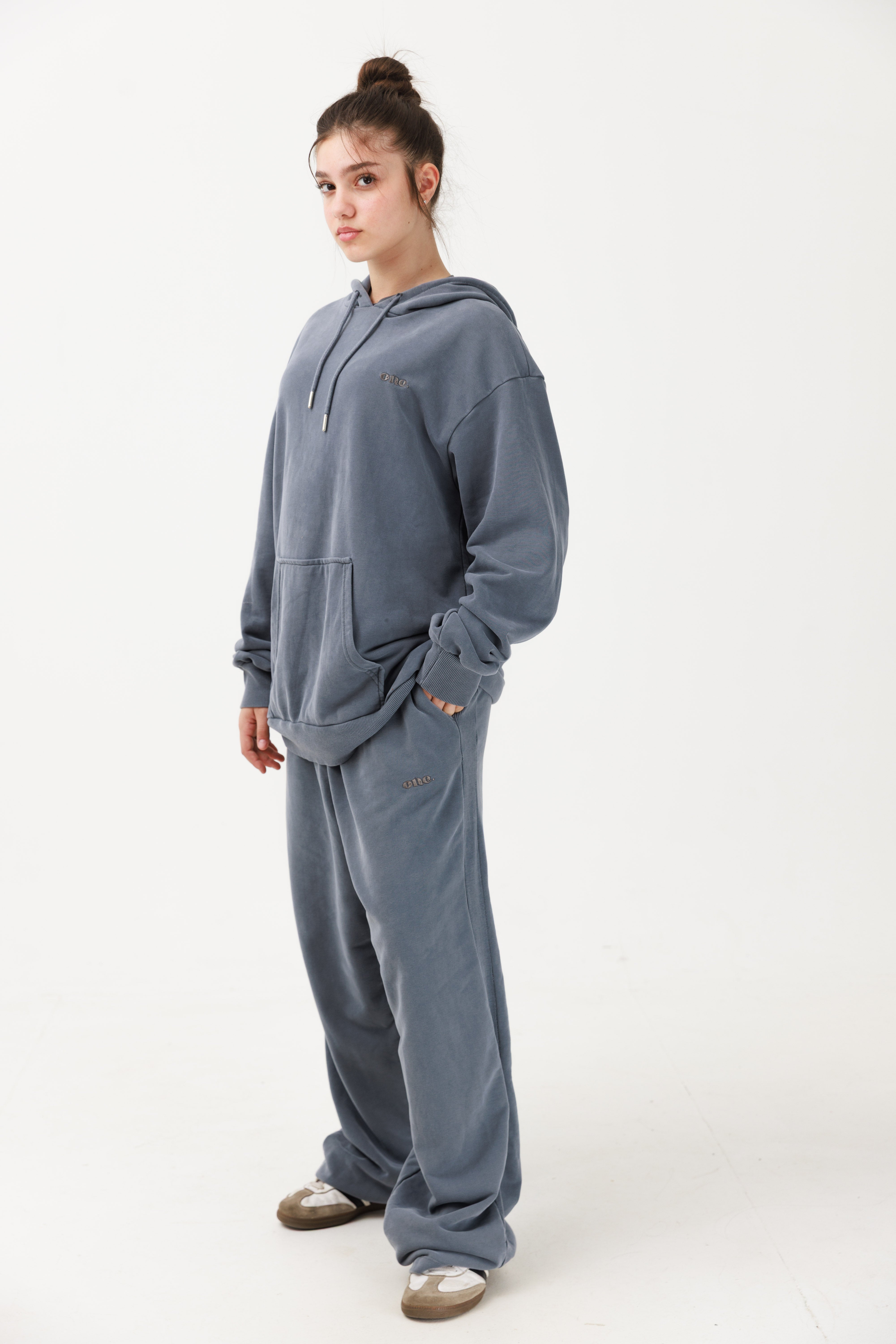 טרנינג פרנץ׳ טרי ווש בצבע ג׳ינס עם פס פטנט ולוגו רקום בצבע אפור