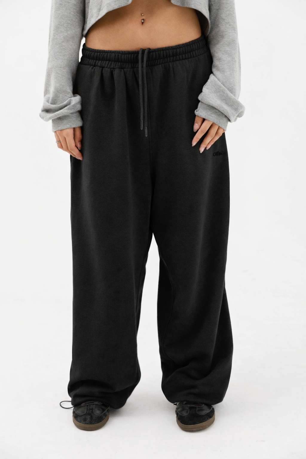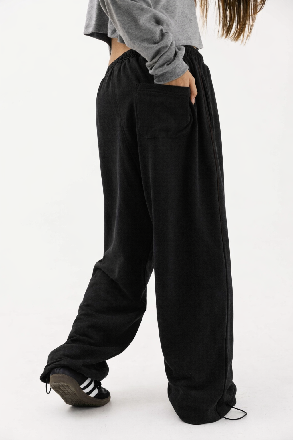 טרנינג פרנץ׳ טרי שחור עם פספול סאטן שחור ולוגו רקום בצבע שחור