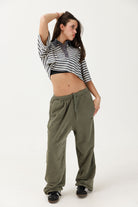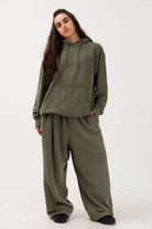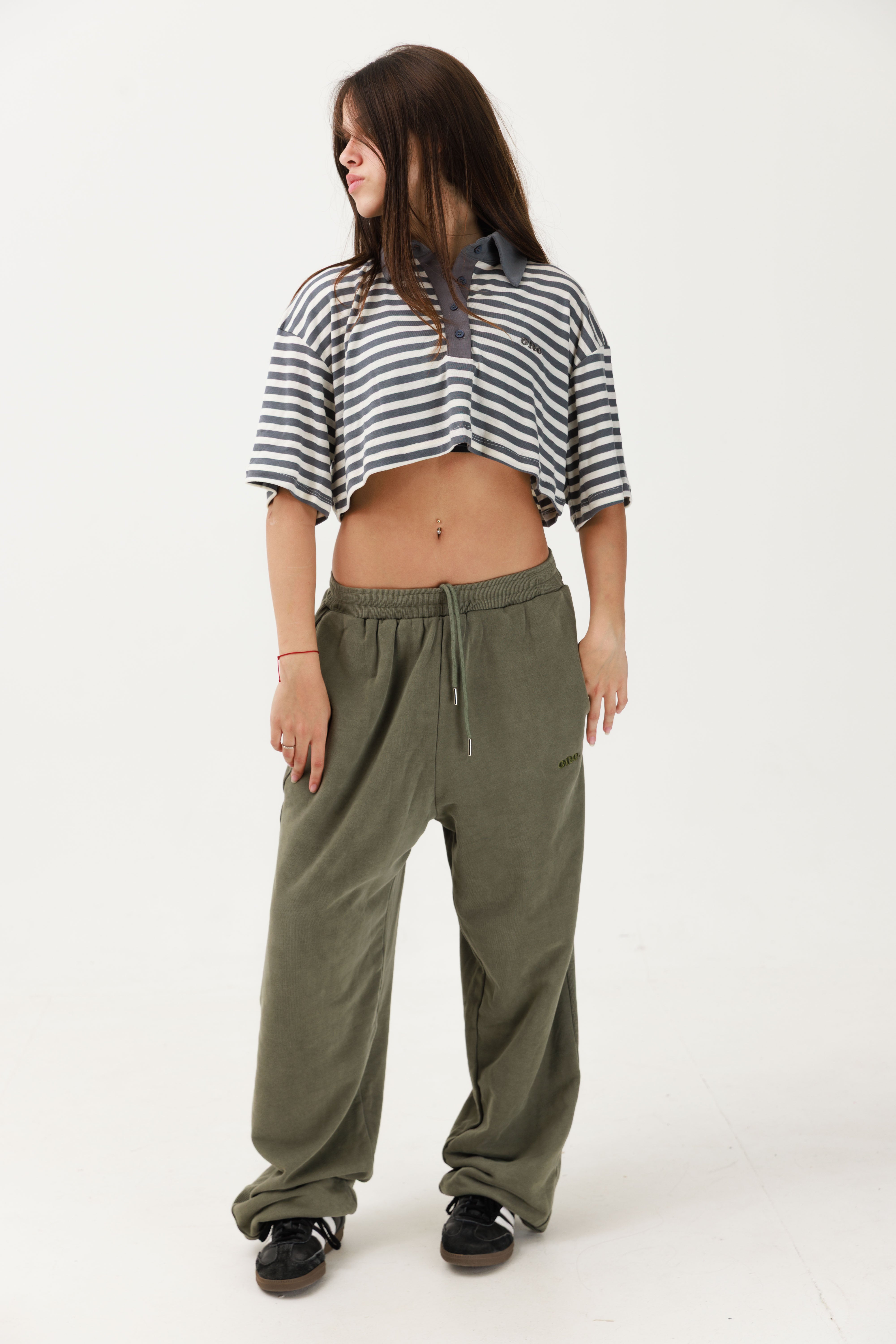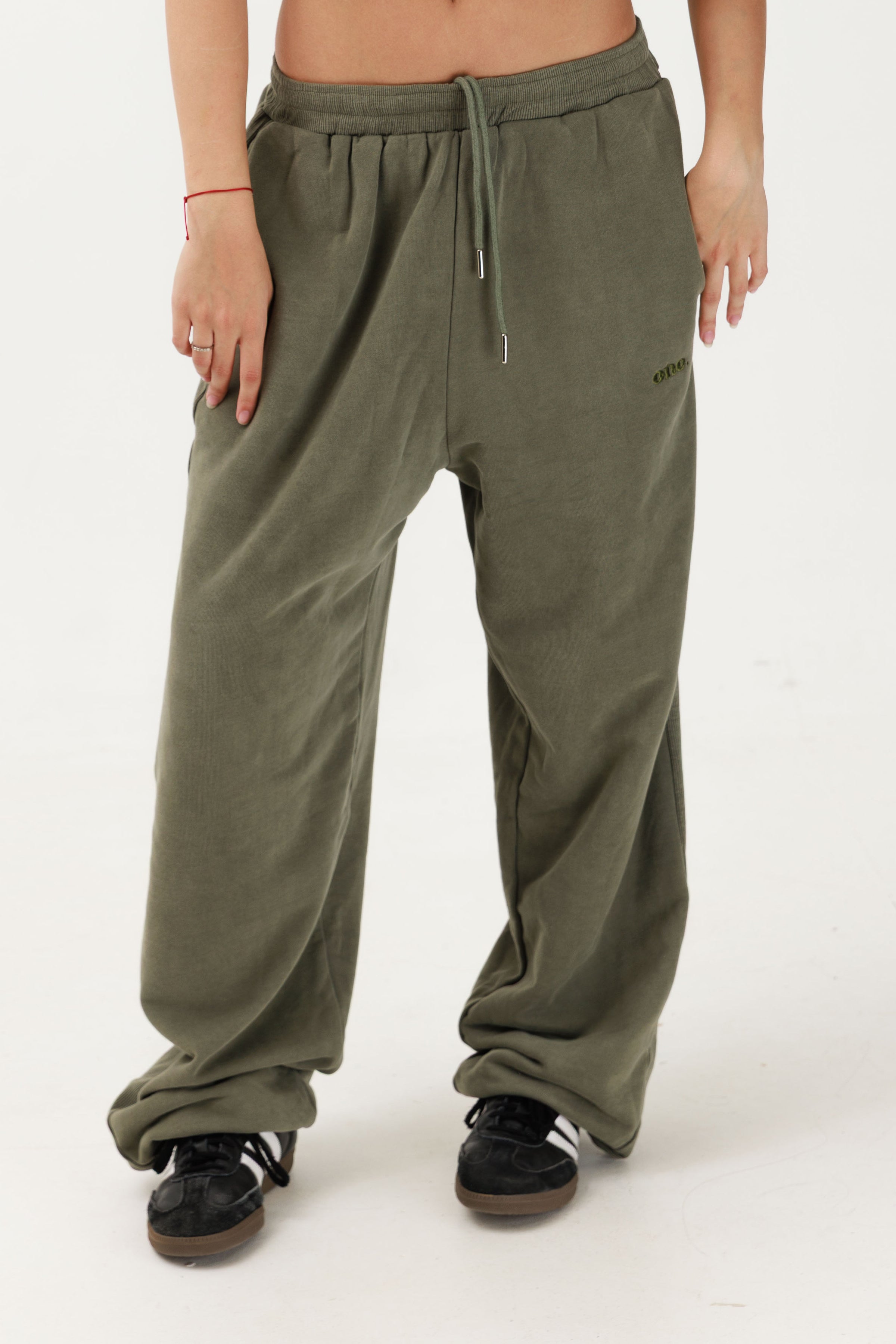 טרנינג פרנץ׳ טרי ווש בצבע ירוק זית עם פס פטנט ולוגו רקום בצבע ירוק