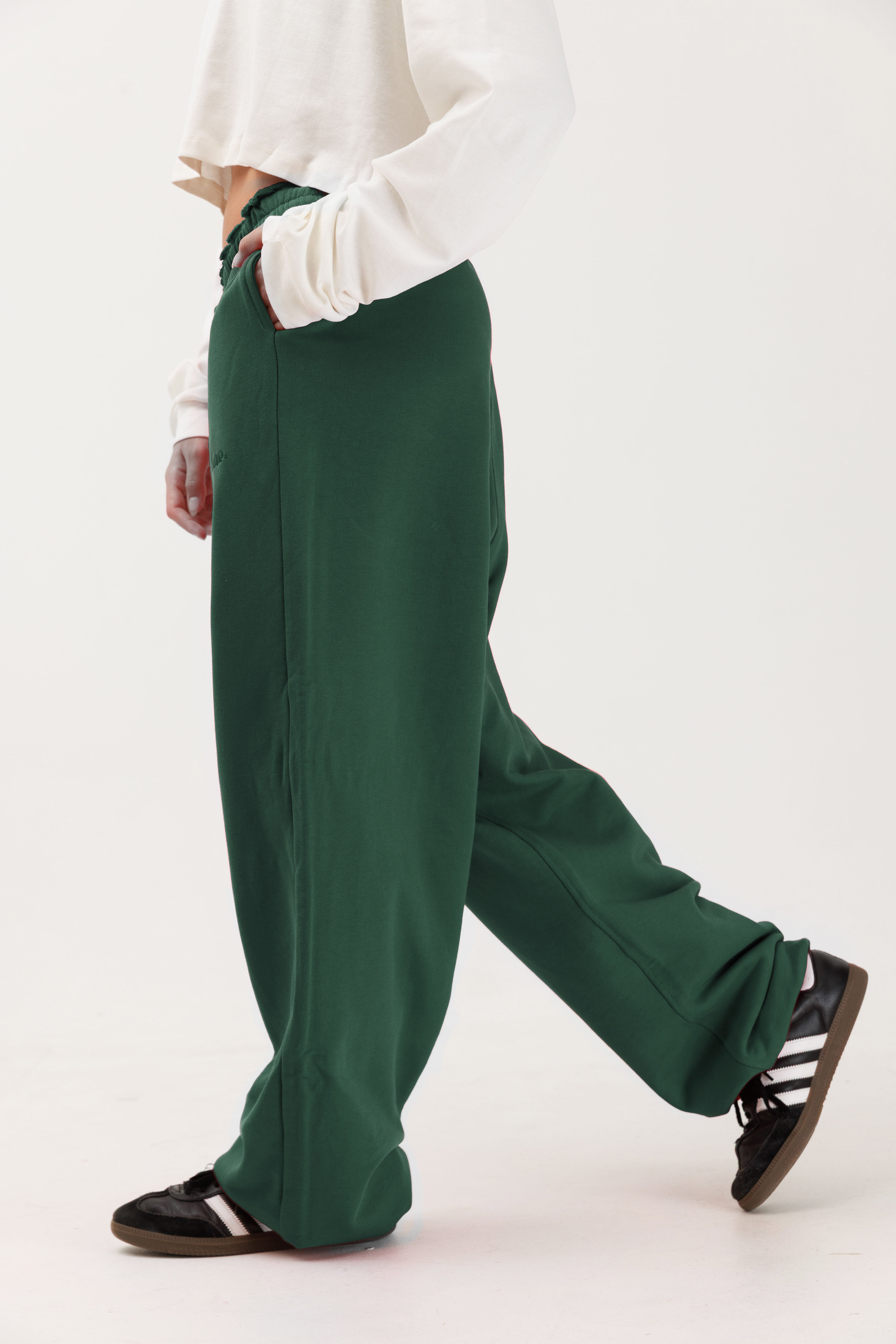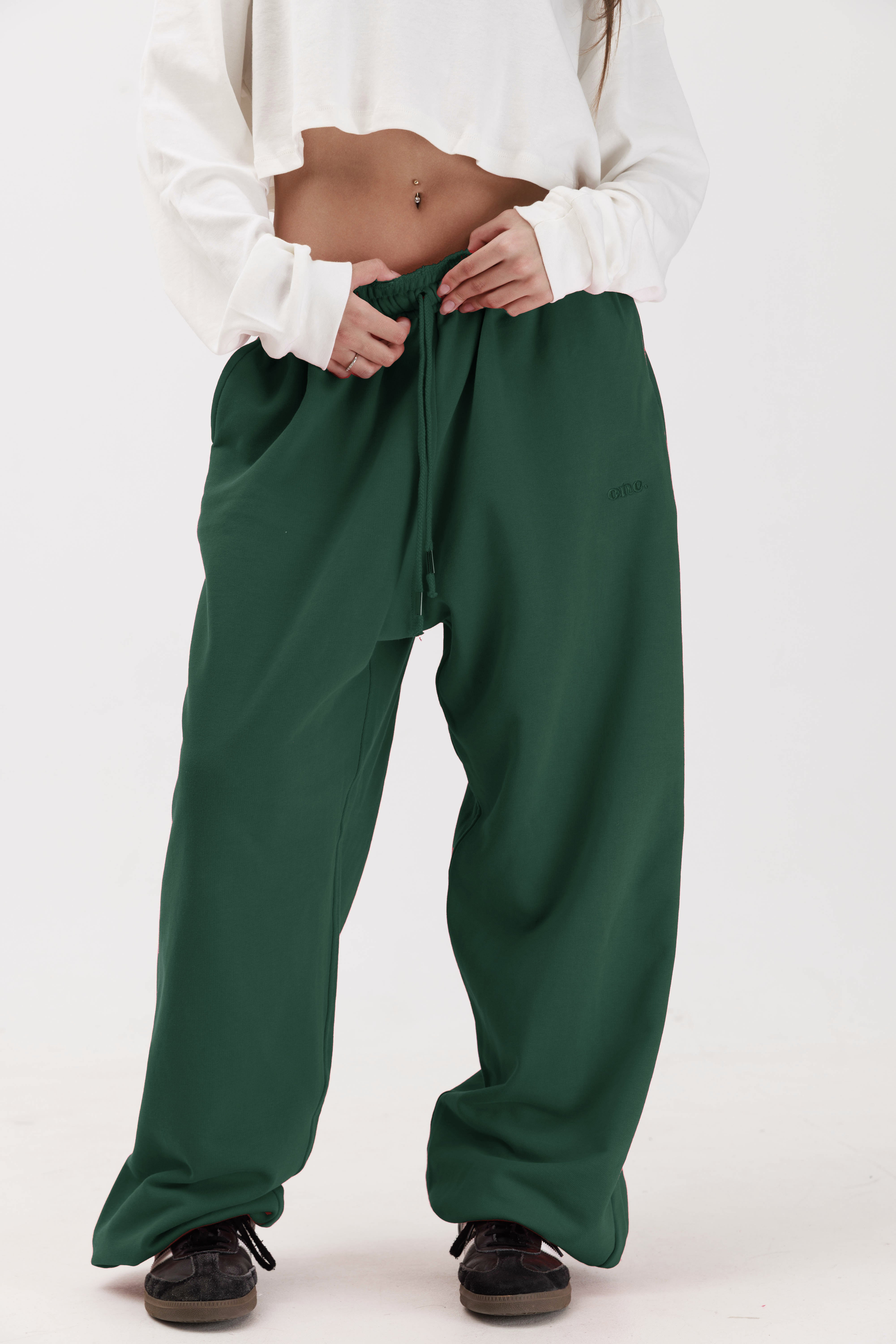 טרנינג פרנץ׳ טרי בצבע ירוק בקבוק עם לוגו רקום בצבע ירוק
