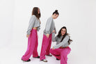 טרנינג פרנץ׳ טרי ורוד פוקסיה עם פספול סאטן אדום ולוגו רקום בצבע אדום