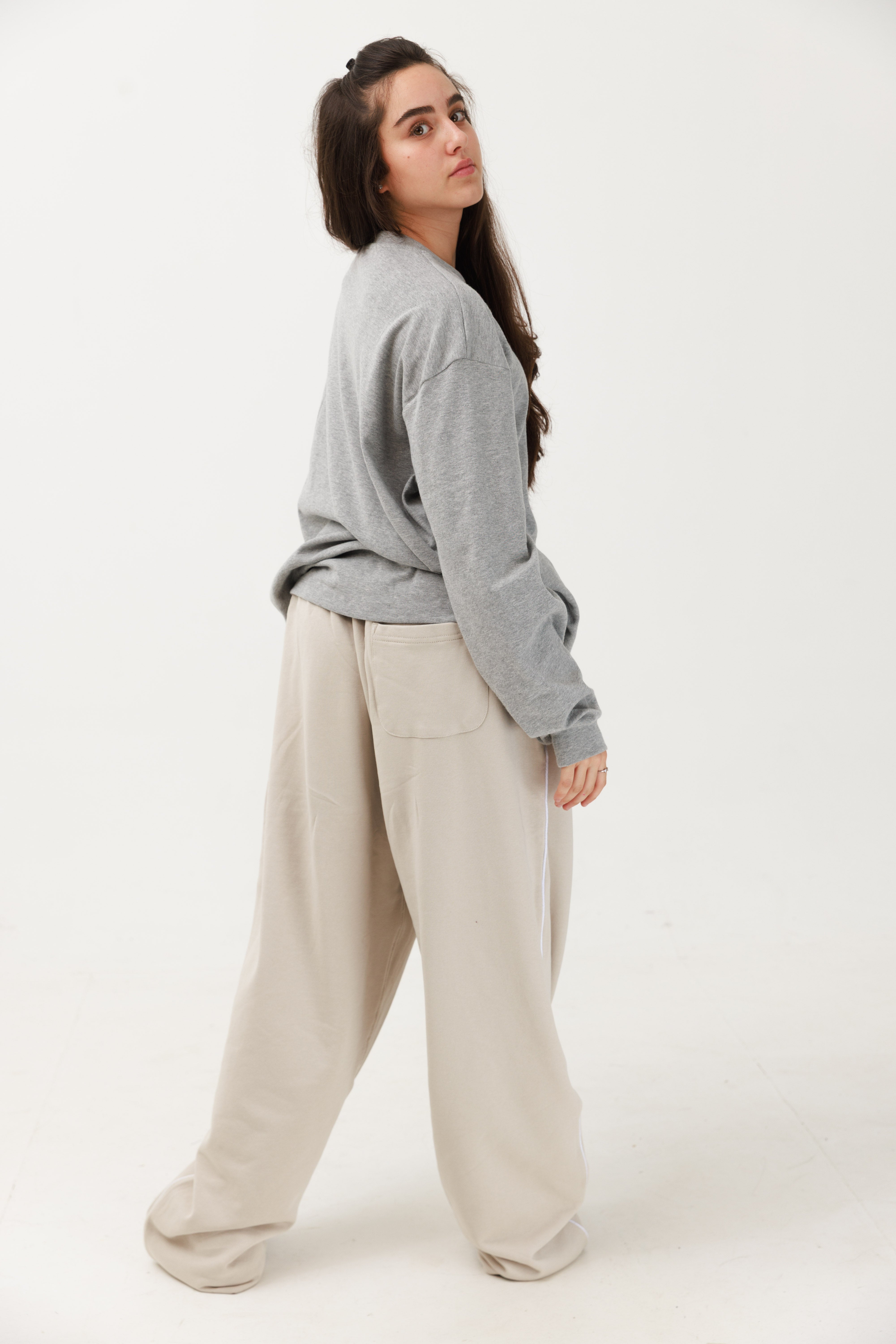 טרנינג פרנץ׳ טרי בצבע אוף וייט עם פספול סאטן לבן ולוגו רקום בצבע שמנת