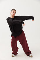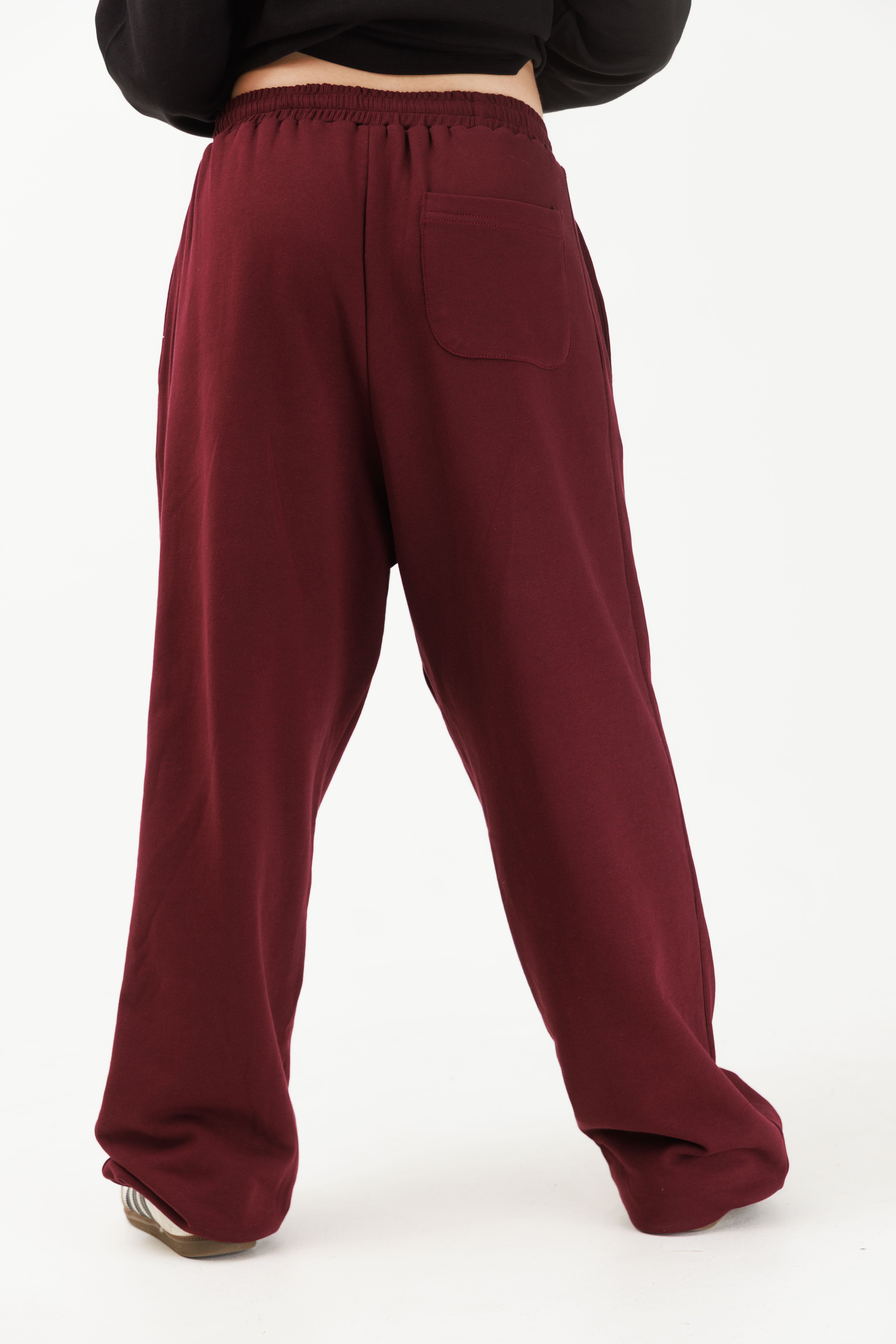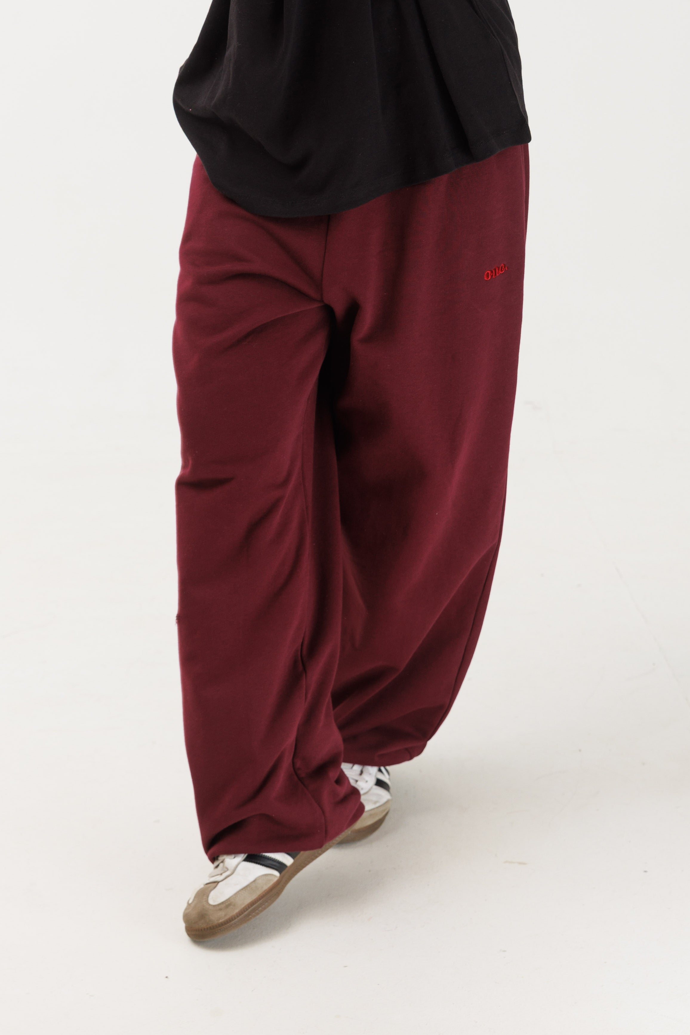 טרנינג פרנץ׳ טרי בצבע בורדו עם פס פטנט ולוגו רקום בצבע בורדו