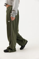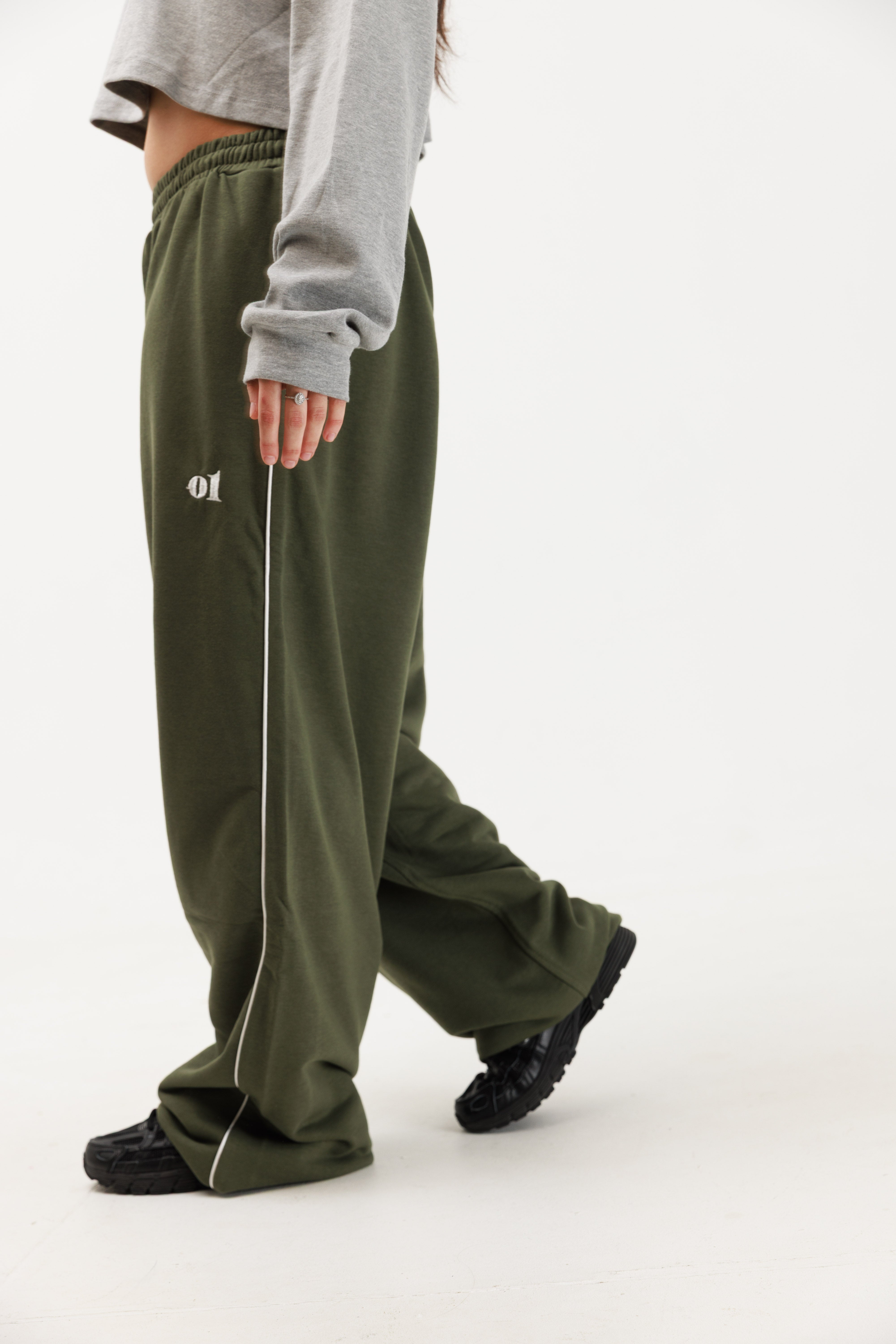 טרנינג פרנץ׳ טרי ירוק זית עם פספול שמנת ולוגו רקום בצבע שמנת