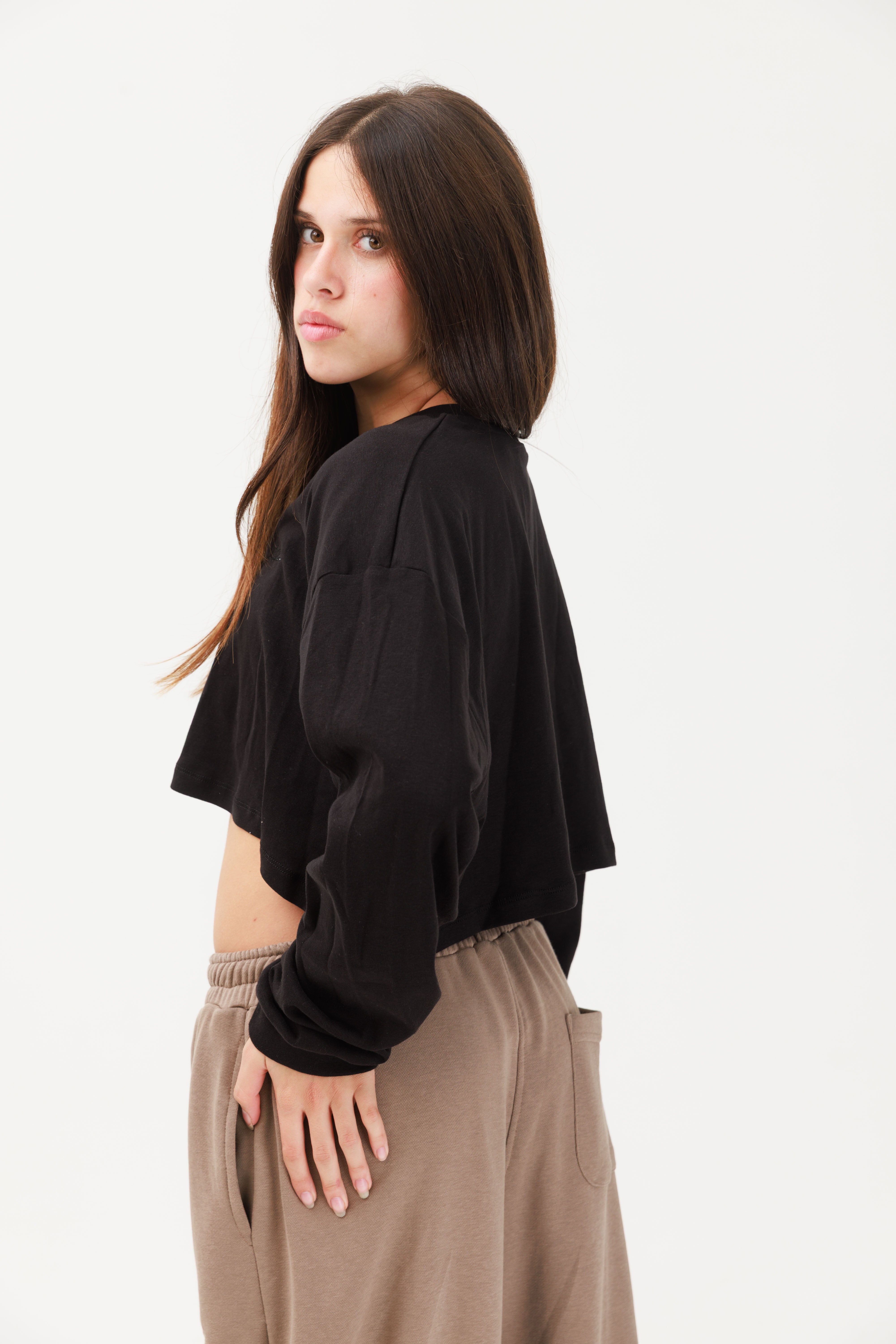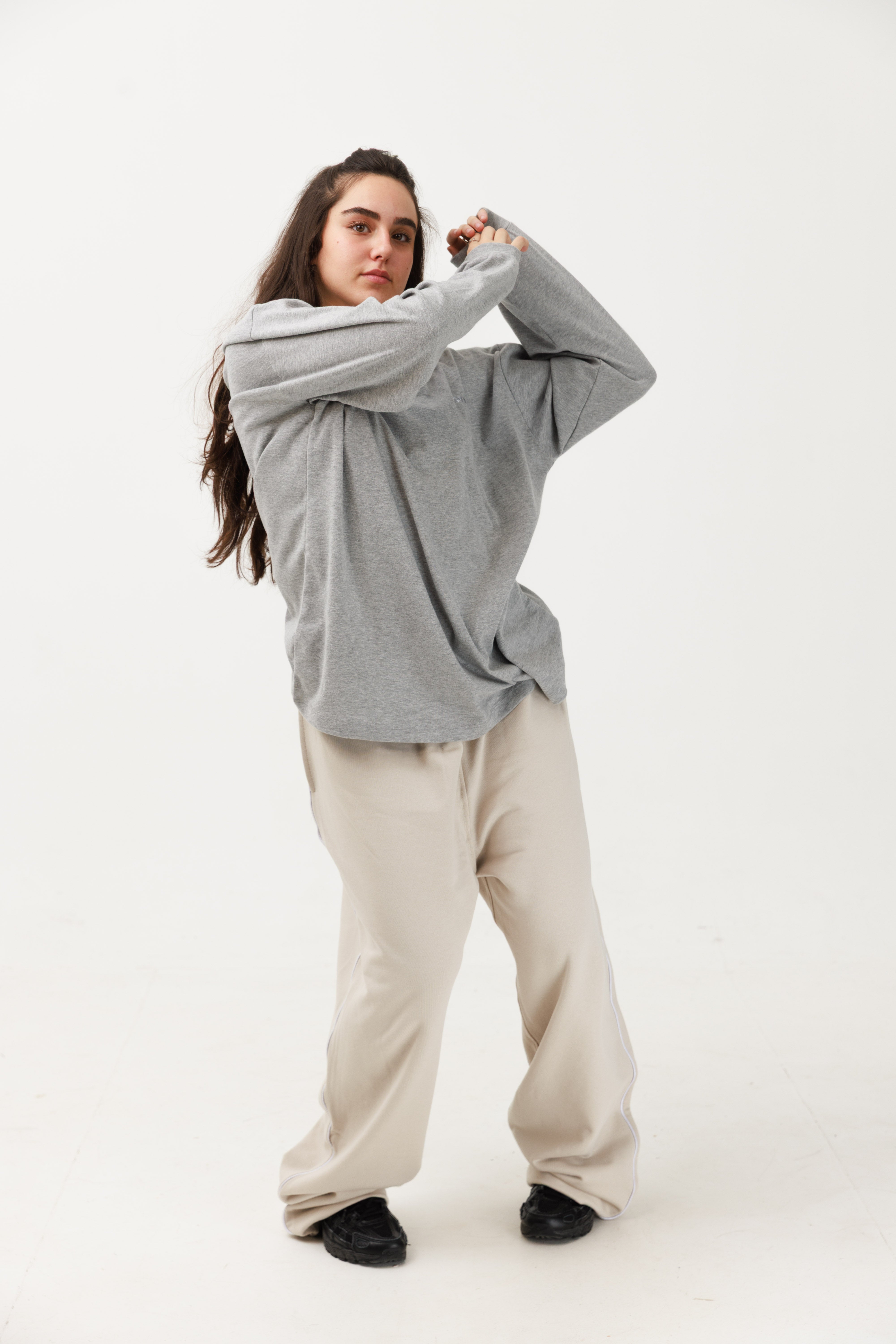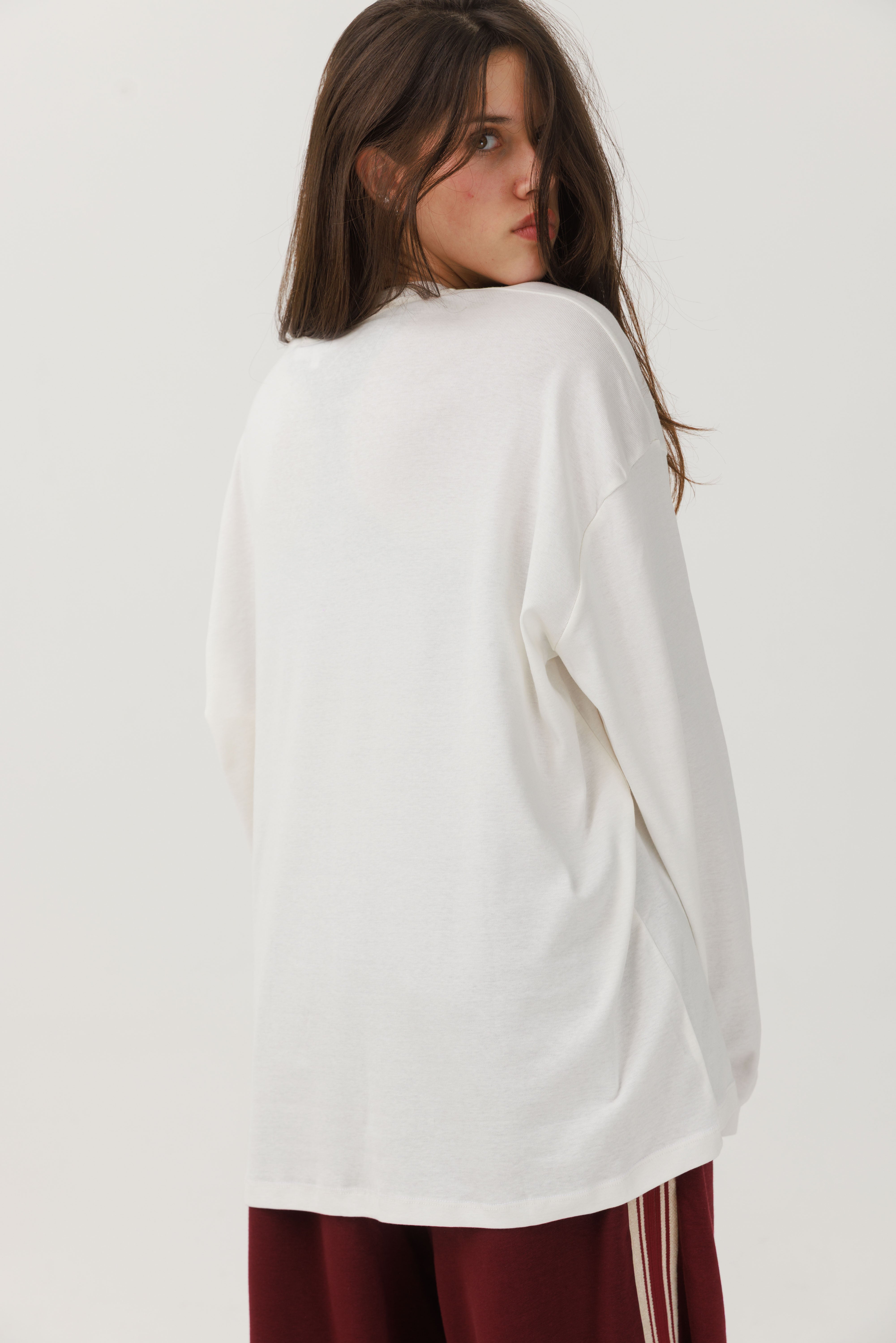 חולצת שרוול ארוך בגזרת אוברסייז רחבה ונשפכת.