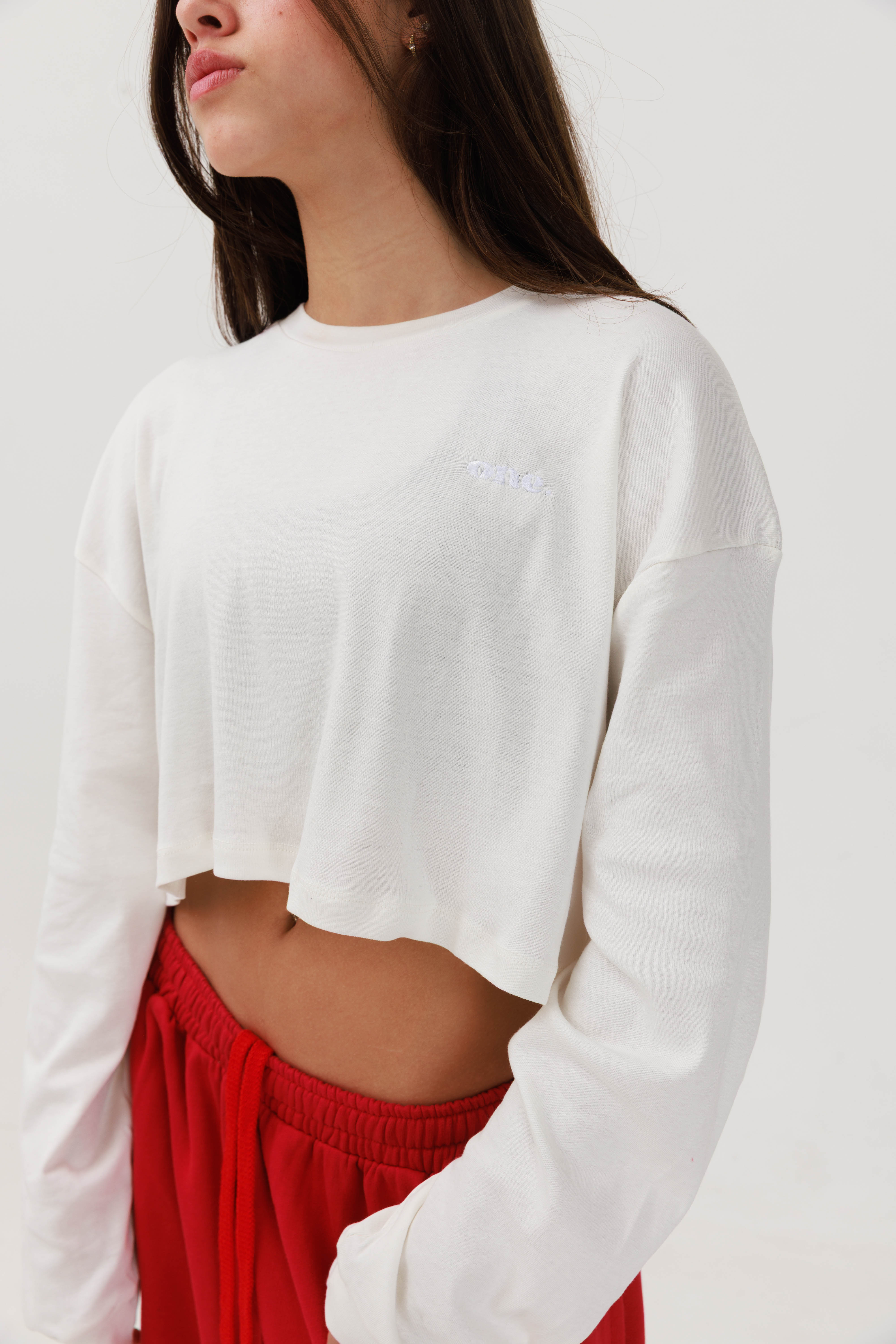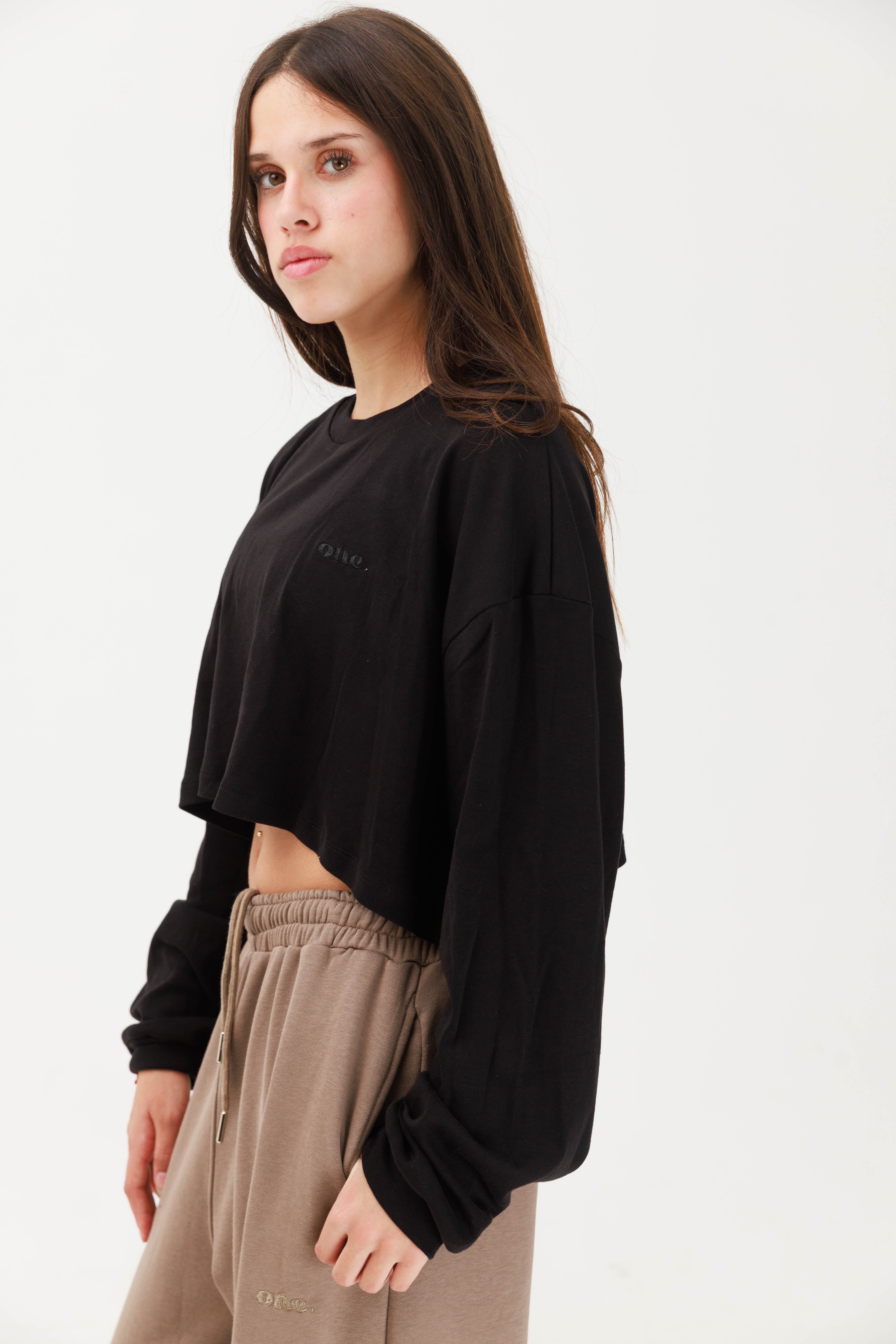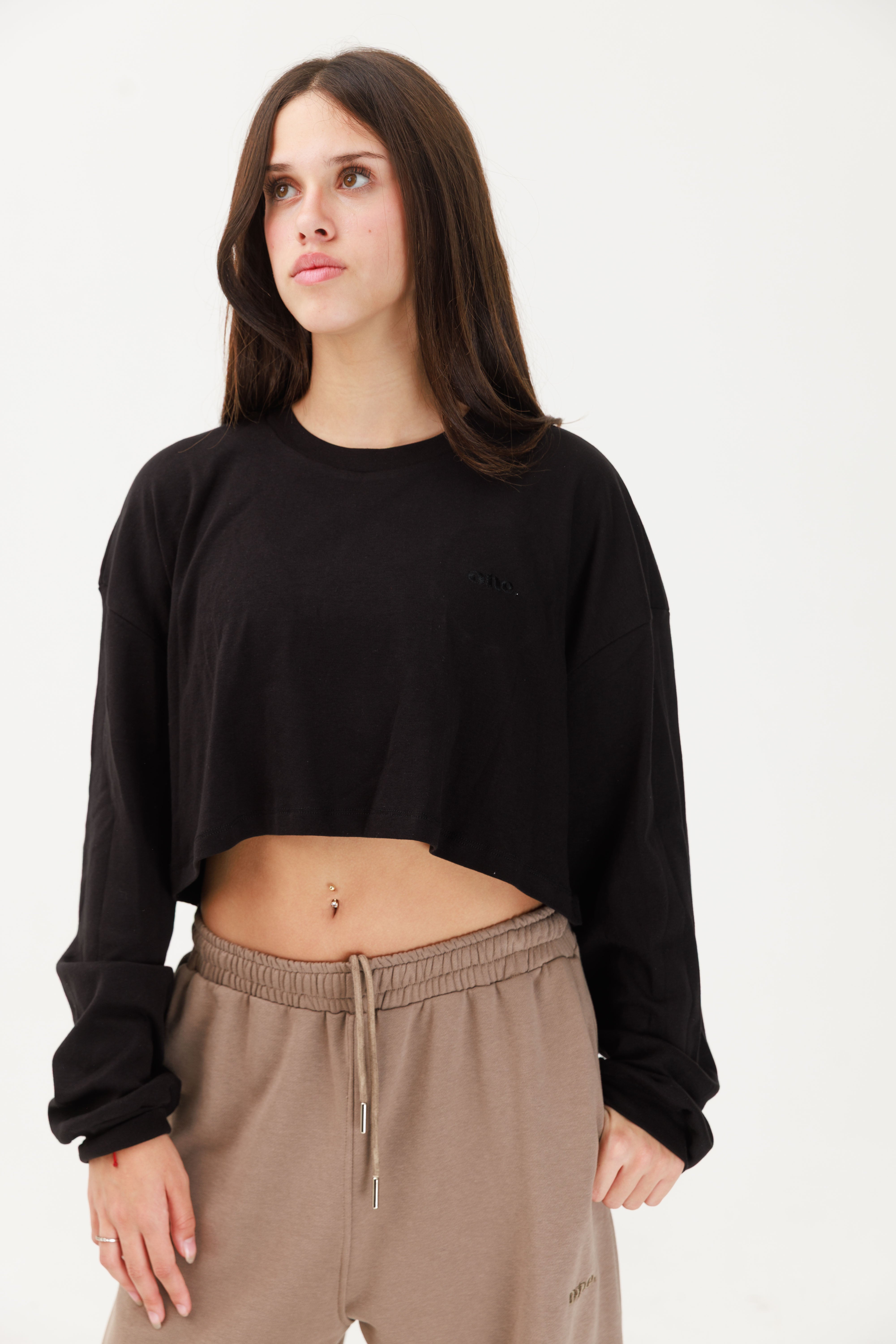 חולצת שרוול ארוך בגזרת אוברסייז רחבה ונשפכת.